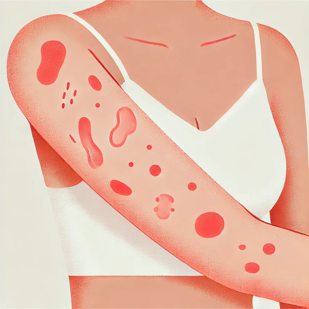 - 붉은 발진과 염증