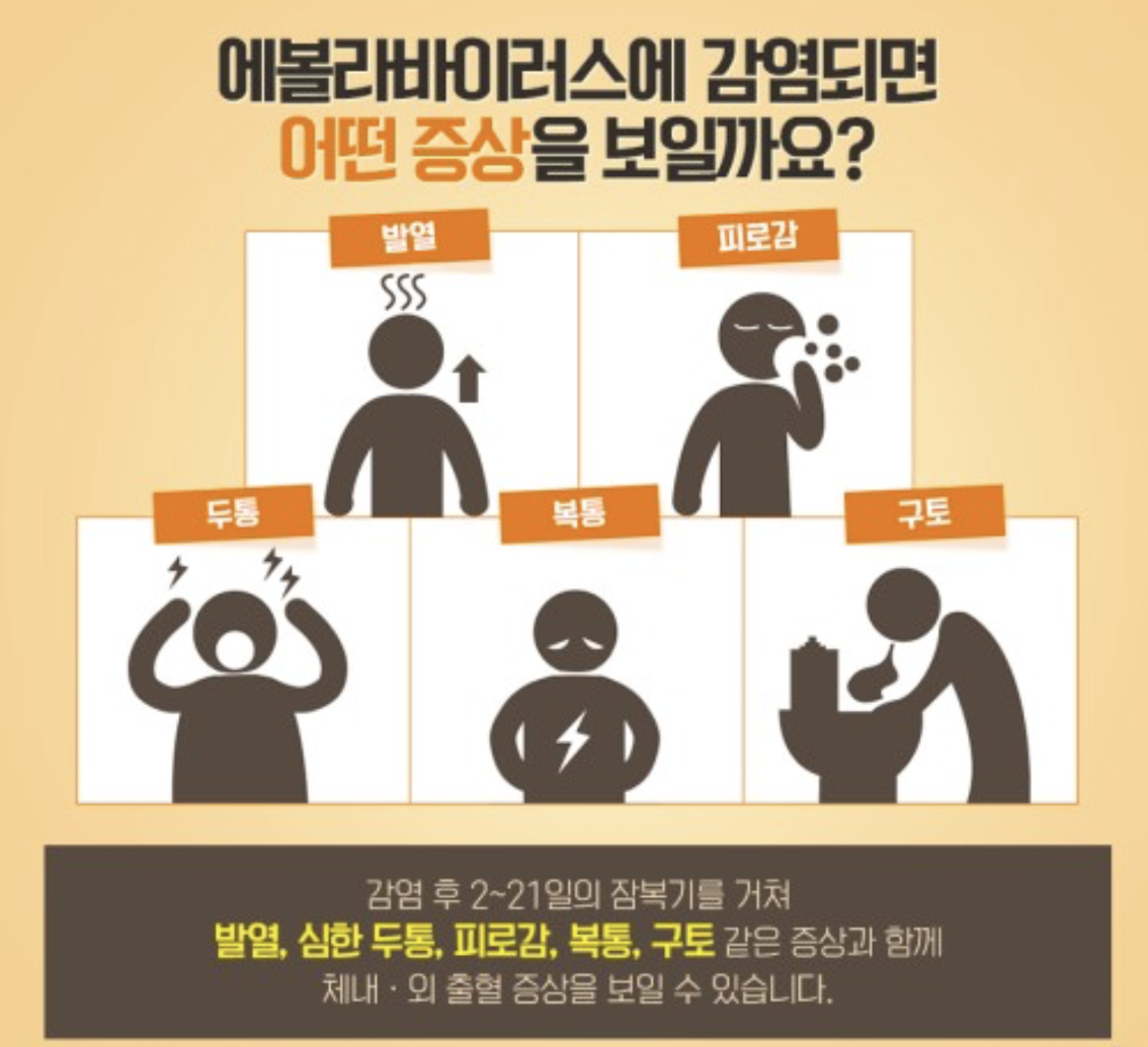 에볼라바이러스병의 초기 증상은 독감과 유사하며, 약 8~10일(짧게는 2일, 최장 21일) 간의 잠복기 후 갑자기 증상이 나타납니다. 주요 증상은 다음과 같습니다: