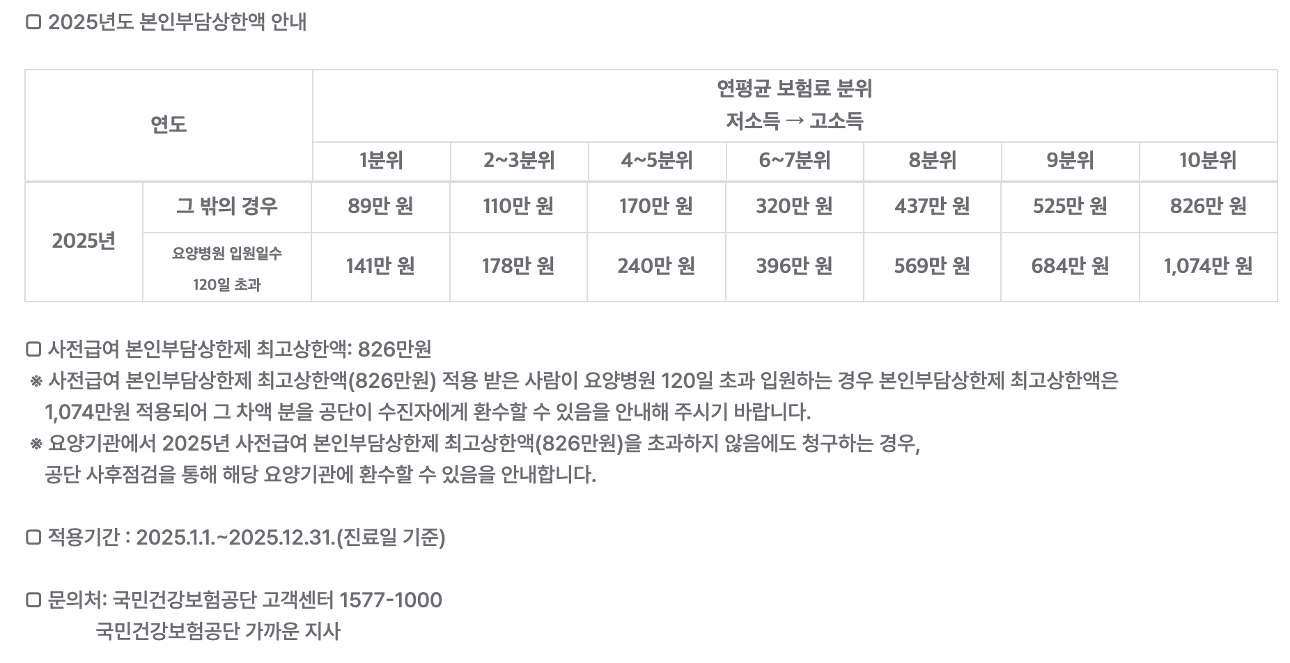 2025년 본인부담상한액 기준